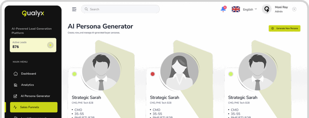 Révolutionnez votre génération de leads B2B avec la première plateforme française d’intelligence commerciale dotée d’IA générative native. Créez des personas dynamiques et orchestrez des tunnels hyper-personnalisés.